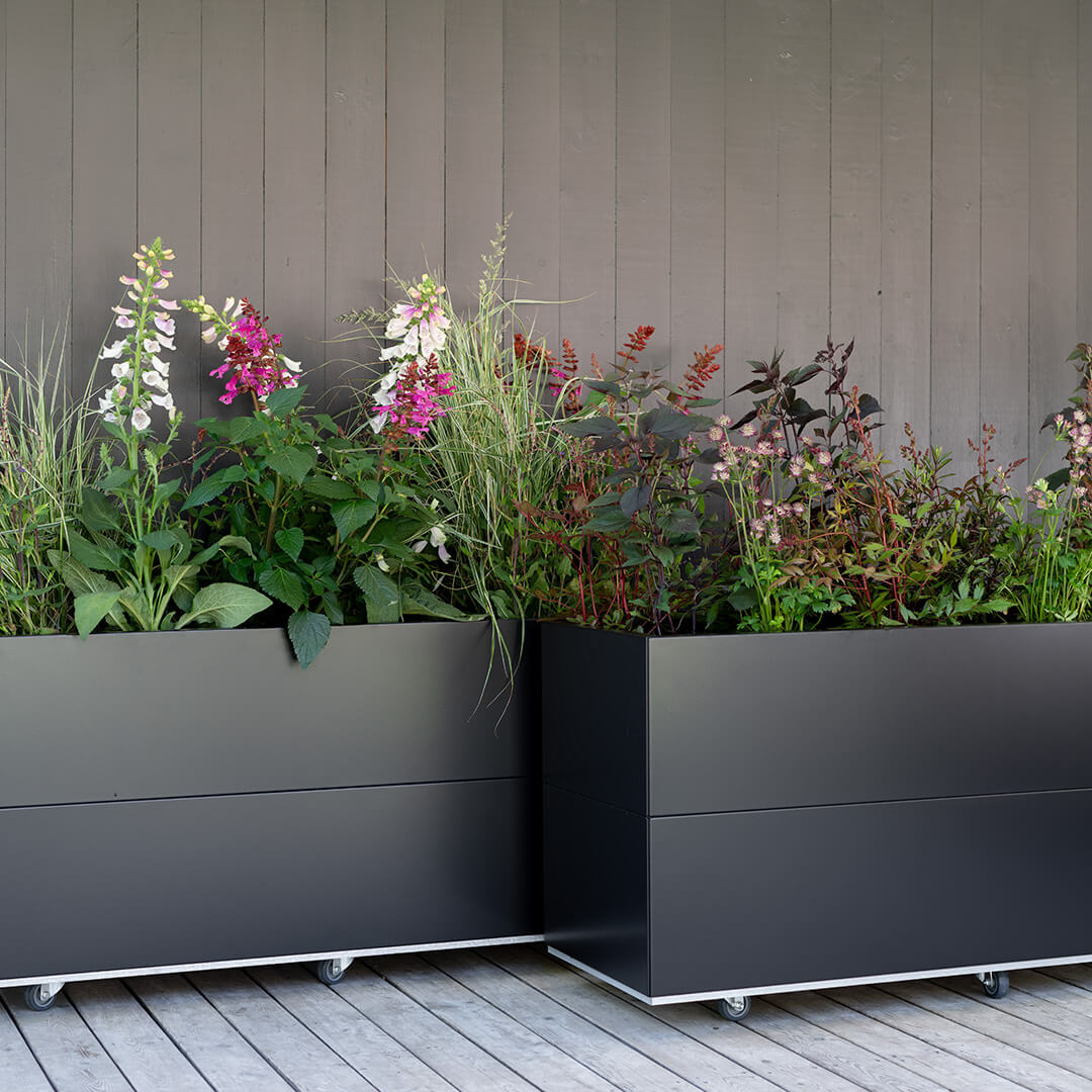 Realiser din hagedrøm med vakre og varige plantekasser i stål. Designet i Norge, produsert i Sverige og skapt for nordiske forhold. Kassene har 10 års garanti mot rust, og tar ikke skade av sol, regn eller frost. Våre bestselgere er plantekasser på hjul som er enkle å flytte rundt på uteplassen.