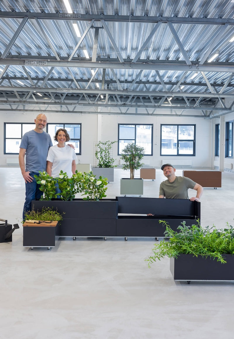 Mange importerte blomsterpotter og plantekasser tåler det norske klimaet dårlig. Keramikk kan sprekke, treverk kan råtne og produkter i plast kan falme i solen. Plantekasser i rustfritt, lakkert stål tåler å stå ute hele året, og holder seg like fine i tiår.