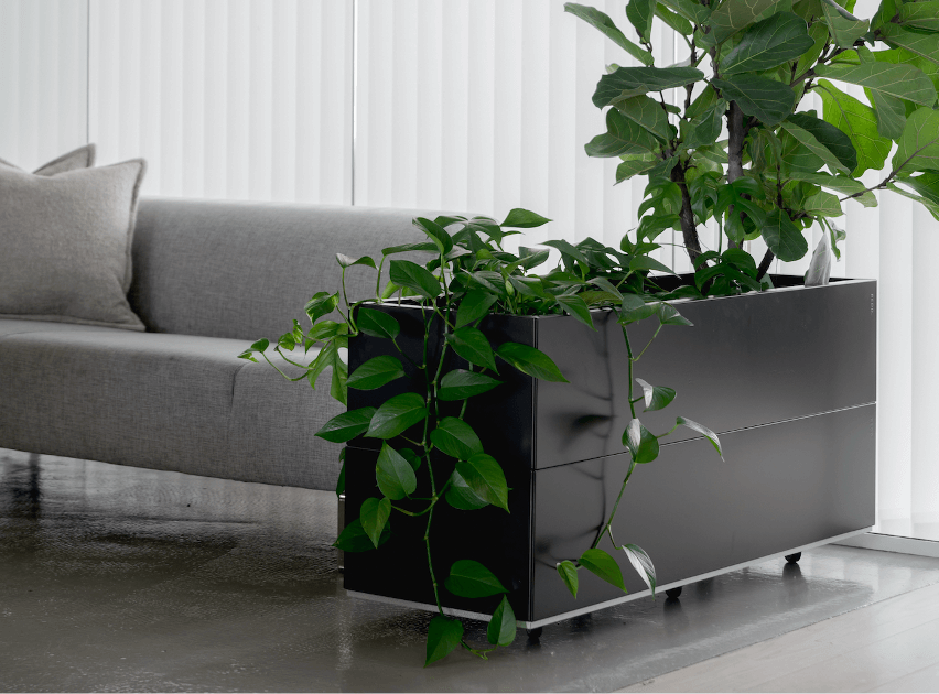Levende planter i hjem og kontorer gir bedre luftkvalitet, økt velvære og et estetisk løft til omgivelsene. Med BEDD kasser på hjul er det enkelt å flytte plantene ved rengjøring eller ommøblering.